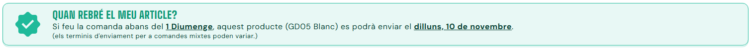 L'estimació d'enviament s'estableix com DEMÀ (Si és després de les 14h un divendres, l'enviament serà dilluns) -