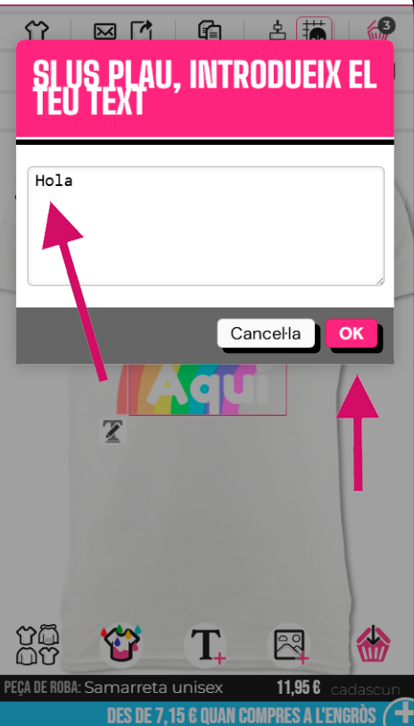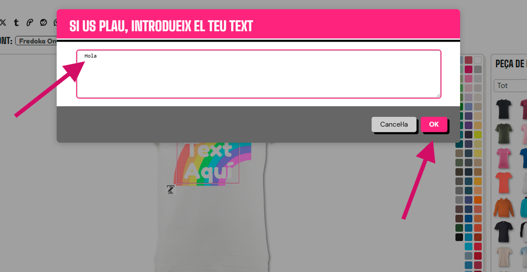 Un cop estiguis al panell d'edició, hauràs d'eliminar "el teu text aquí" i introduir el text que vulguis i fer clic a OK.