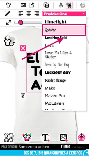Volem la font "Lobster", així que fes clic per seleccionar aquesta font