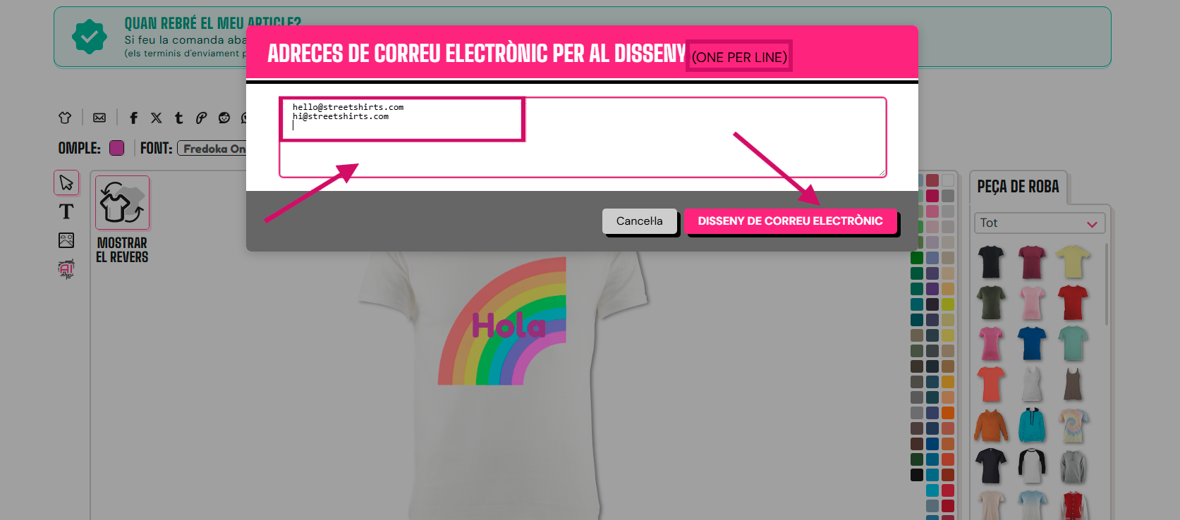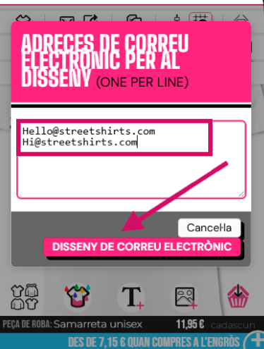 Si vols enviar-lo a més d'una persona (com un grup d'amics per comprar el teu disseny), pots posar la llista d'adreces de correu electrònic (una per línia) per enviar.