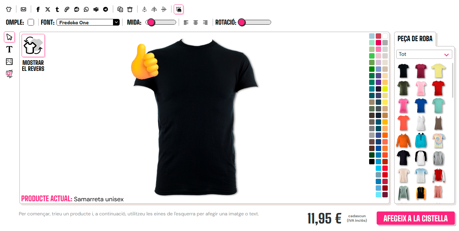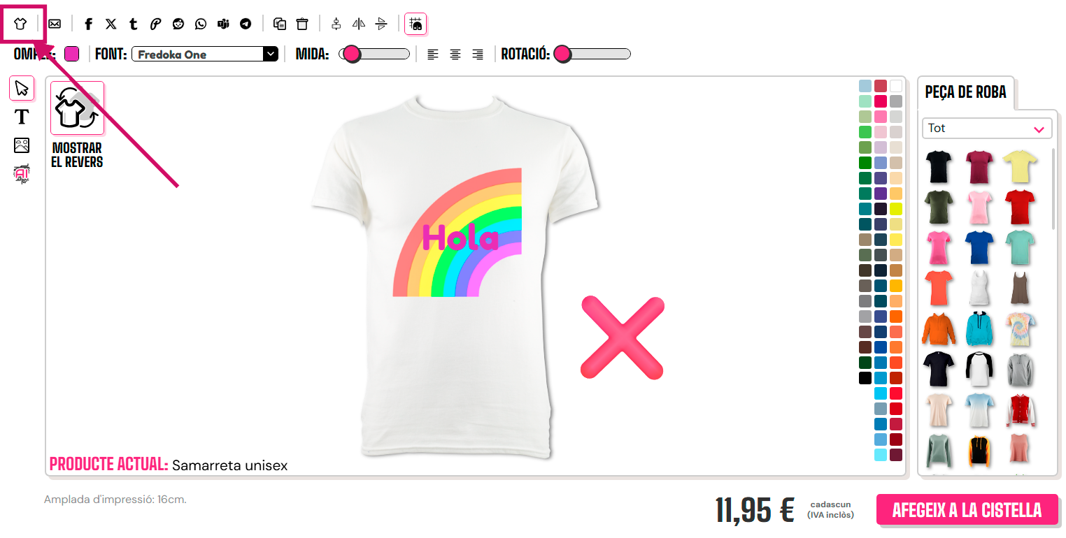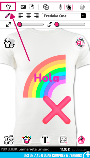 Per començar de nou el teu disseny si no estàs satisfet. Només cal que facis clic a la petita icona de la samarreta a la cantonada superior esquerra.