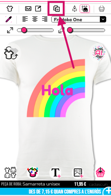 Per duplicar una imatge o text i assegurar-te que tots coincideixen, pots fer clic al botó de copiar situat al dissenyador. Assegura't d'haver seleccionat la teva imatge o el teu text abans de prémer aquest botó.