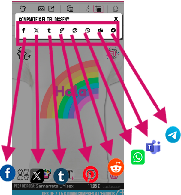 Per pujar els teus dissenys a les xarxes socials, hauràs de fer clic a la plataforma on vols compartir.