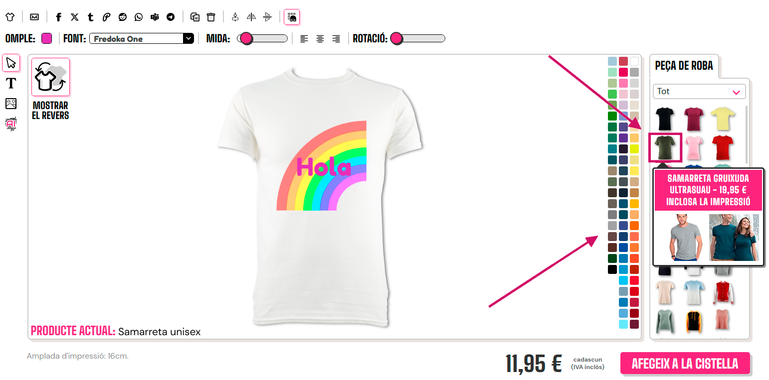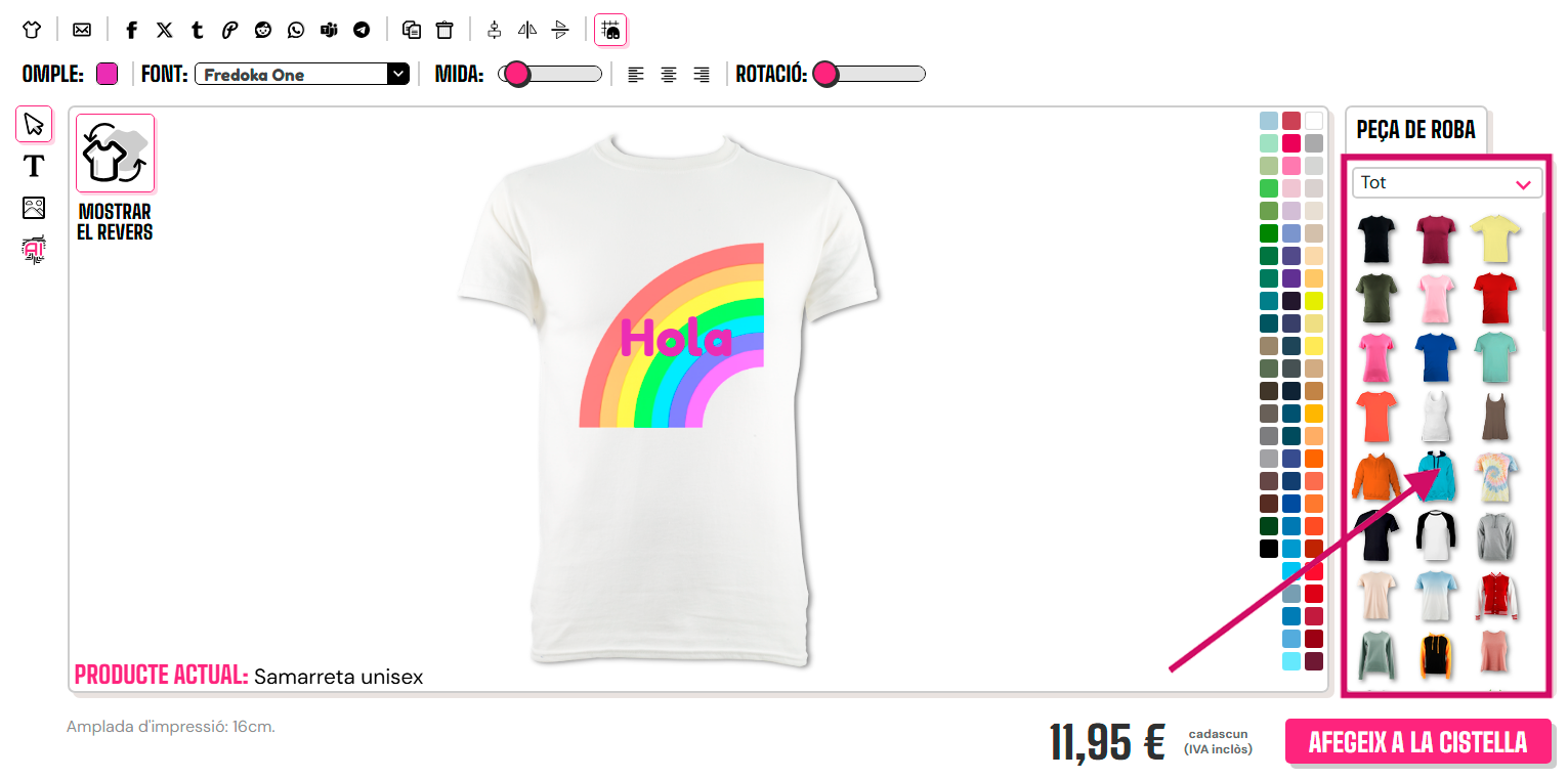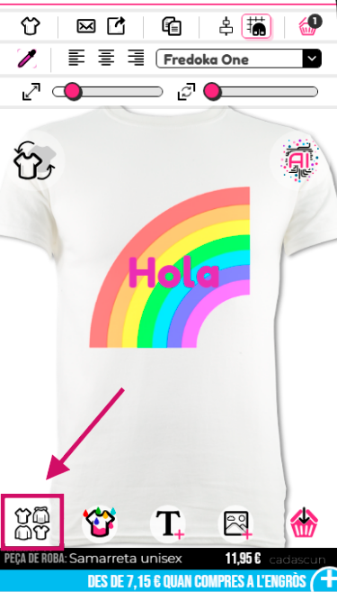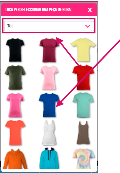 Per triar la teva peça de roba, pots seleccionar quina prefereixes fent clic a la icona de la peça a la part inferior del dissenyador