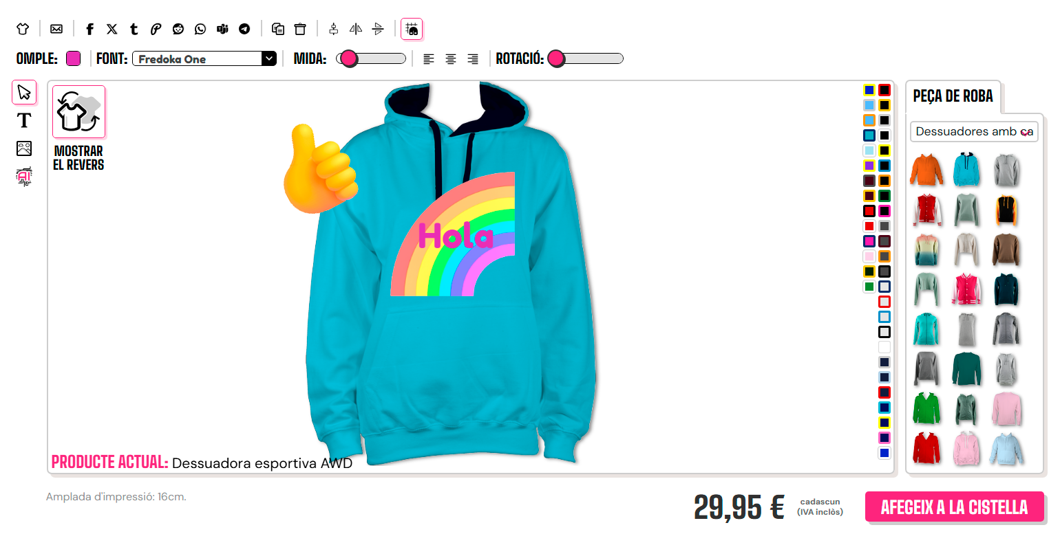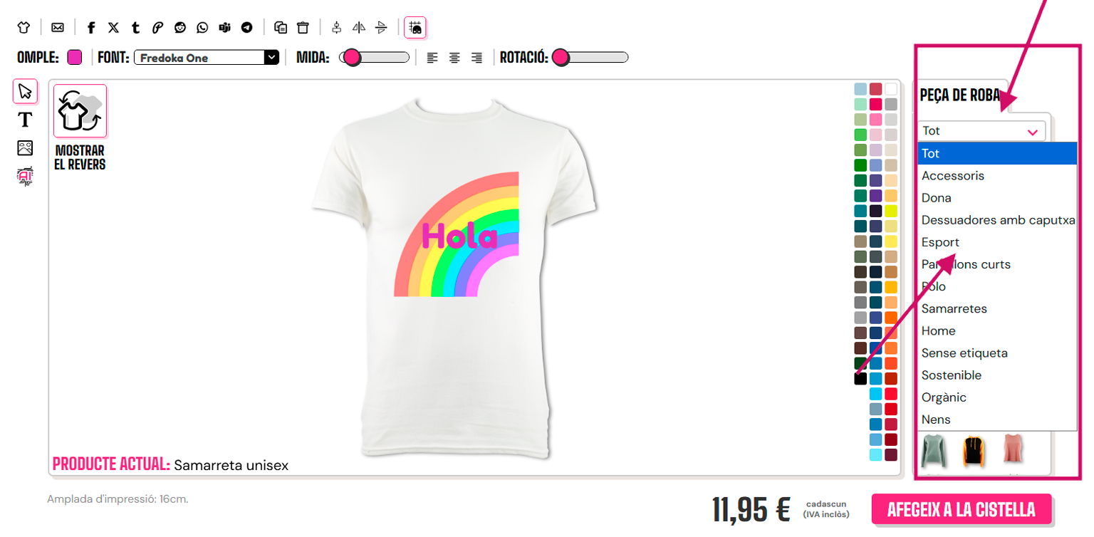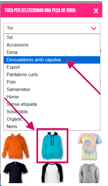 Pots utilitzar el menú desplegable per seleccionar una categoria. Per exemple: no volem una samarreta, volem una dessuadora. Seleccionem dessuadora de la llista