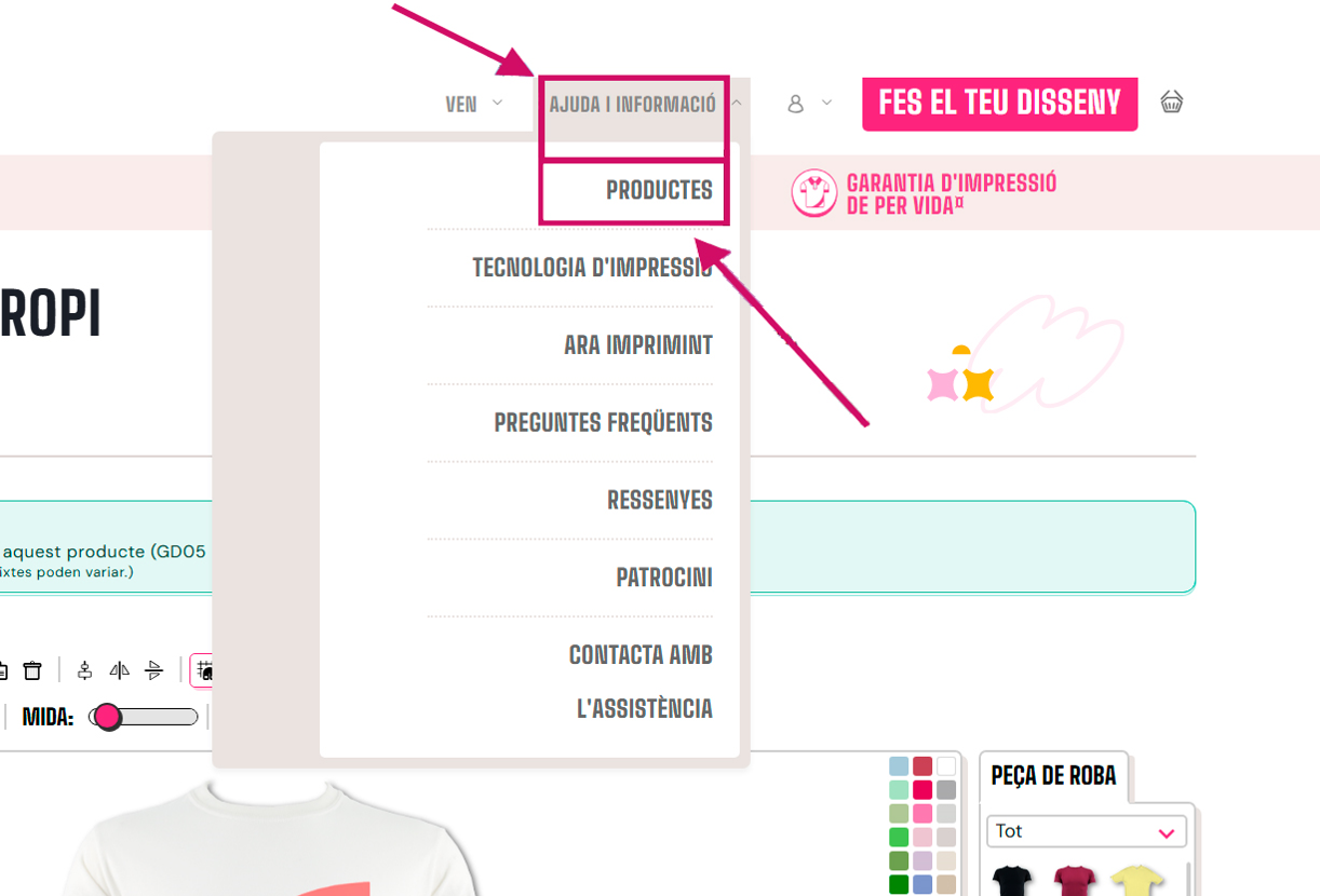 Per trobar més detalls sobre els nostres productes, ves a "AJUDA I INFORMACIÓ" a la part superior de la pantalla i selecciona "PRODUCTES"