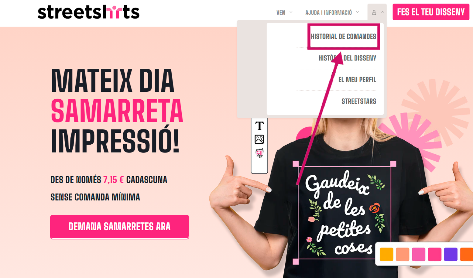 Després has de fer clic a Historial de comandes: