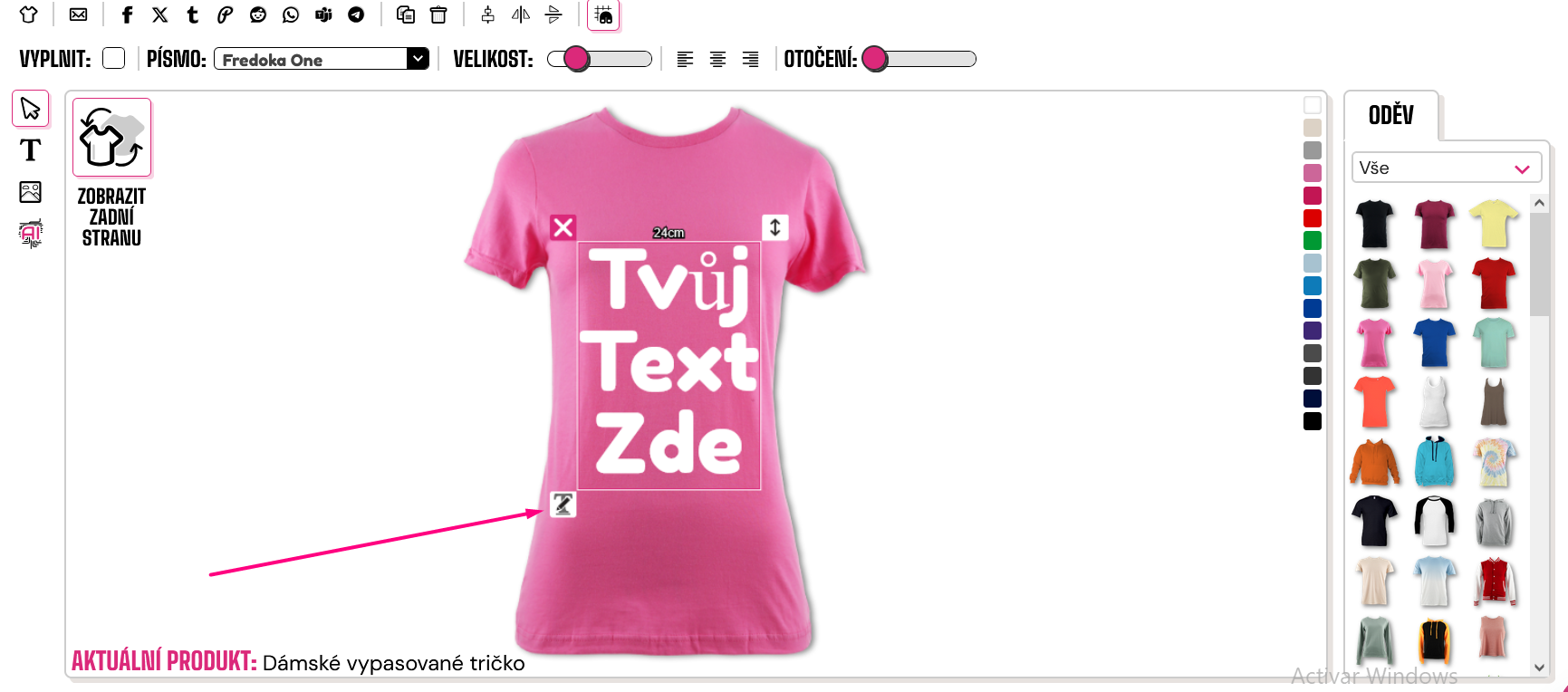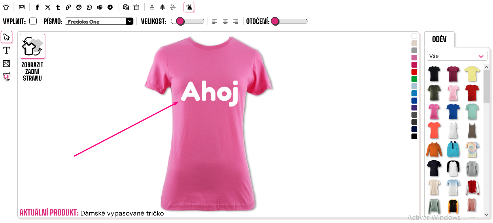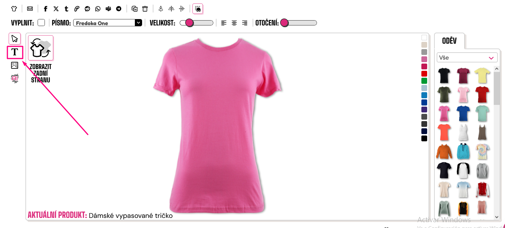 Pro přidání textu na váš oděv klikněte na symbol "T" na levé straně návrháře.