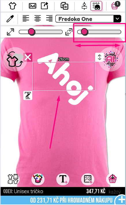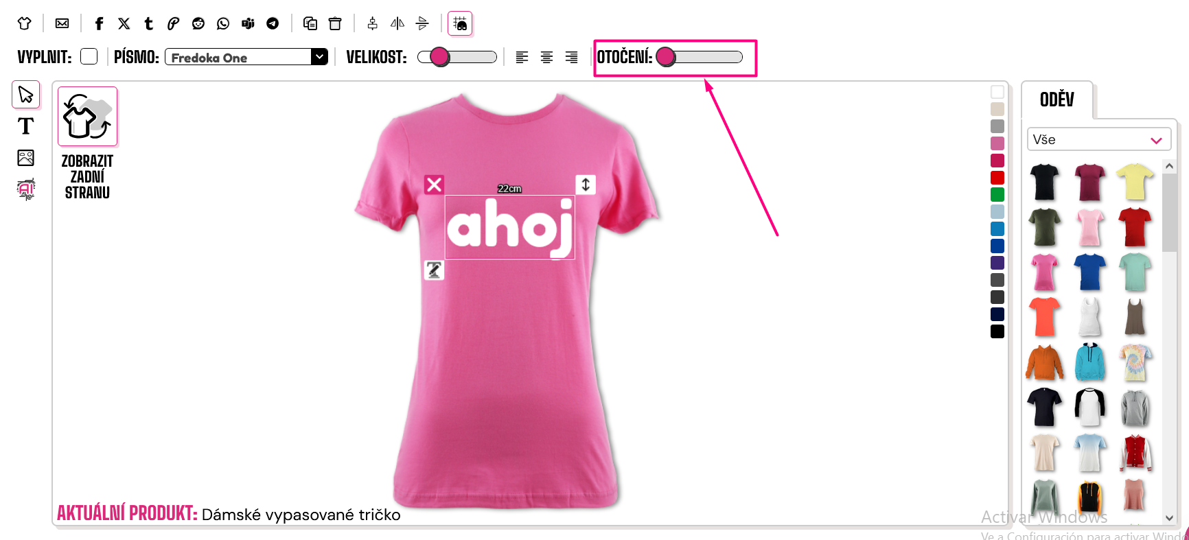 Pro otočení obrázku nebo textu budete potřebovat prst a posunout posuvník rotace v pravém horním rohu návrháře.