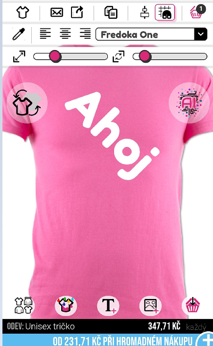 Pro otočení obrázku nebo textu budete potřebovat myš a posuvník v pravém horním rohu návrháře.