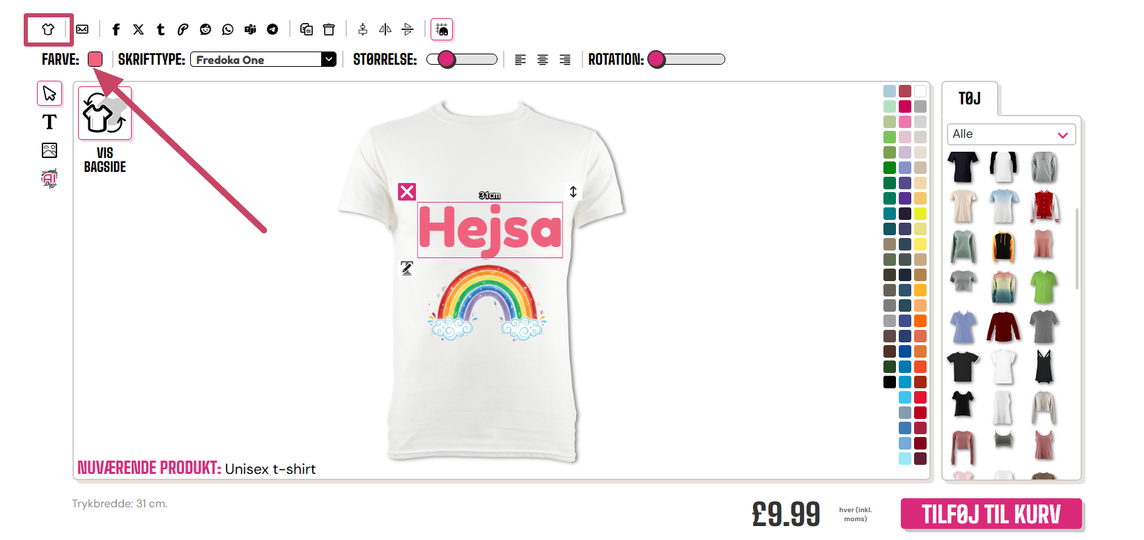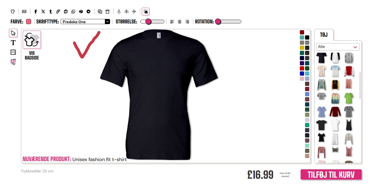 Hvis du ikke er tilfreds med dit design og ønsker at starte forfra: du skal blot klikke på det lille t-shirt-ikon i øverste venstre hjørne.