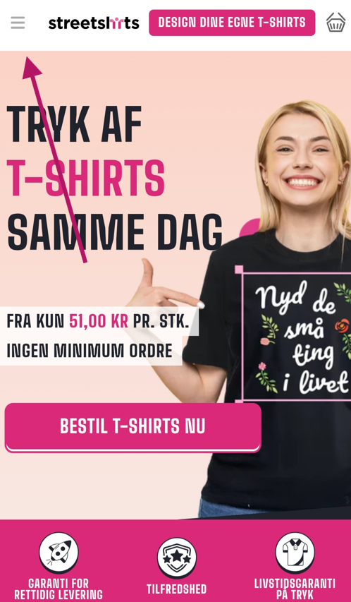 For at finde ud af mere om vores trykteknologi skal du klikke på de tre streger i venstre hjørne.