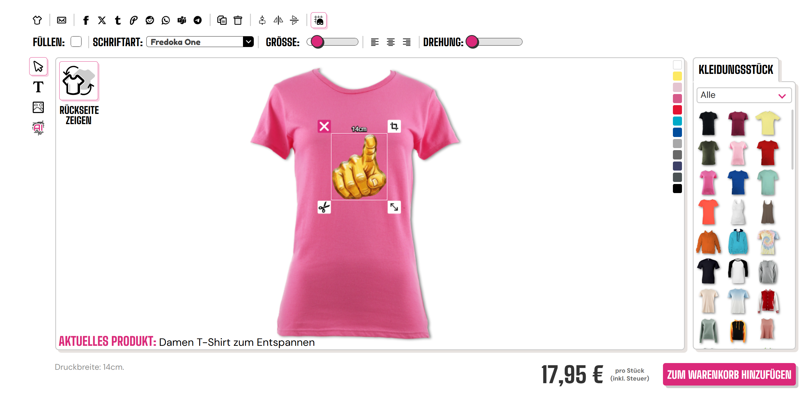 Ab und zu bekommen wir bei Bestellungen Anfragen bezüglich der Größe des Drucks auf dem Shirt. Dazu bitten wir Sie, zwei Dinge zu überprüfen: