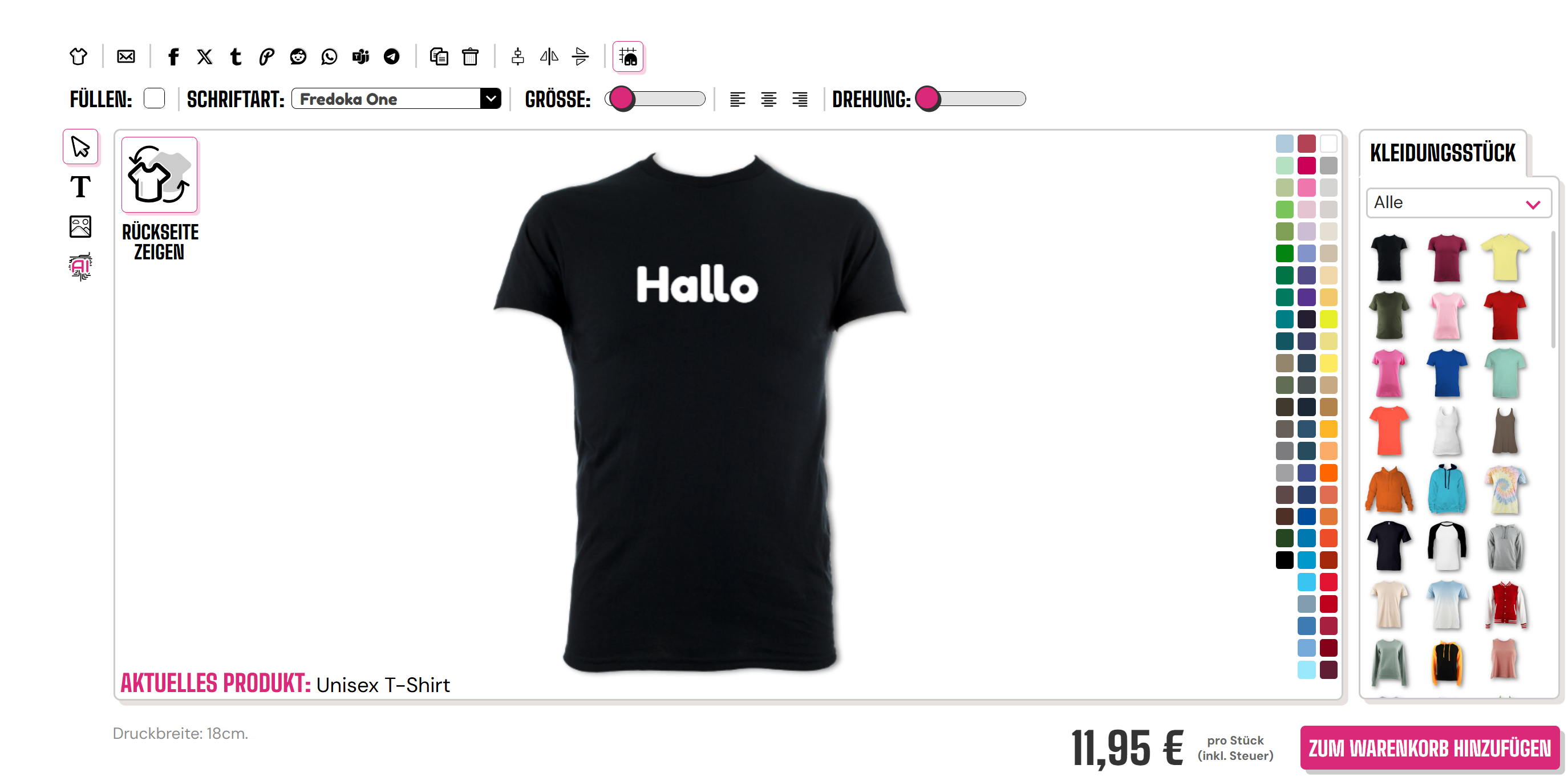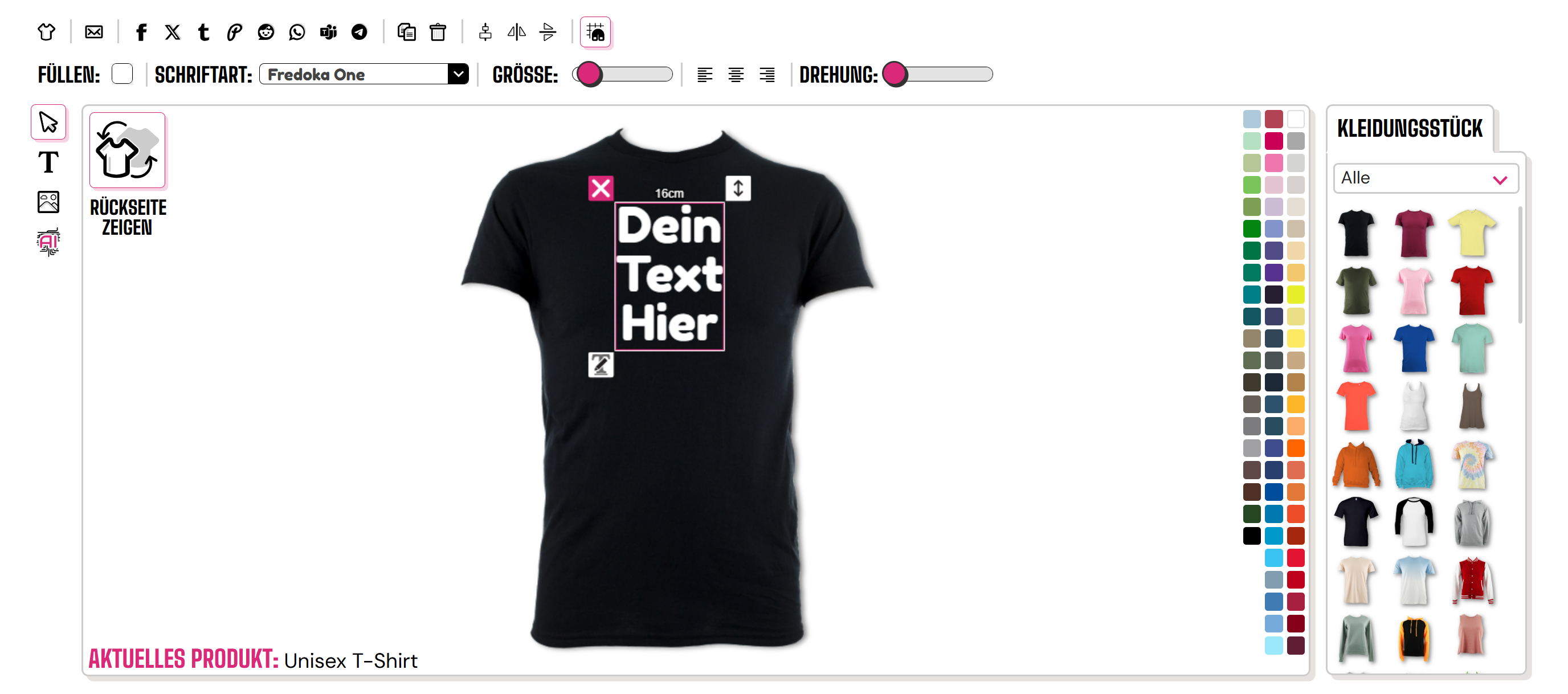 Um einen Text zu Ihrem Oberteil am Desktop hinzuzufügen, klicken Sie bitte auf das "T"-Symbol auf der linken Seite des Designers.