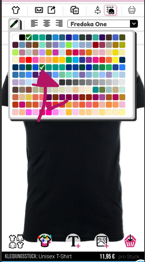 Sobald dies ausgewählt ist, können Sie die Farboptionen für unsere Schriftarten sehen. Der Haken im Kästchen zeigt die aktuell als Schriftfarbe ausgewählte Farbe an. Diese wollen wir nicht - also klicken Sie auf die Schriftfarbe, zu der Sie wechseln möchten: