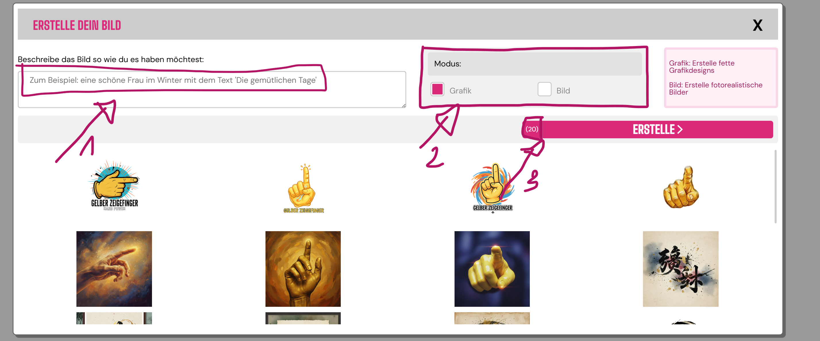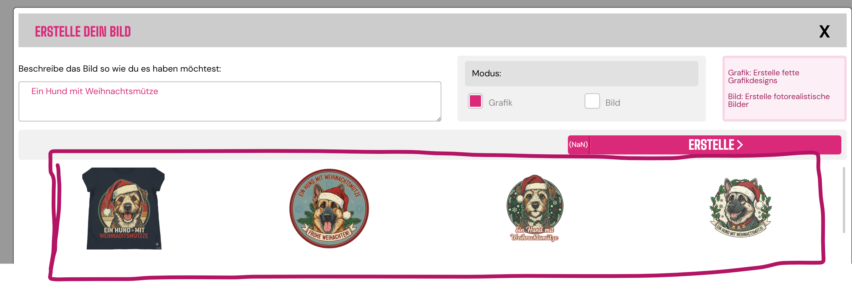 - Hier können Sie eingeben, was Sie möchten - ein Beispiel ist ein Dackel mit Weihnachtsmütze. Wenn Sie dies möchten, geben Sie "ein Hund mit Weihnachtsmütze" in das Feld ein.