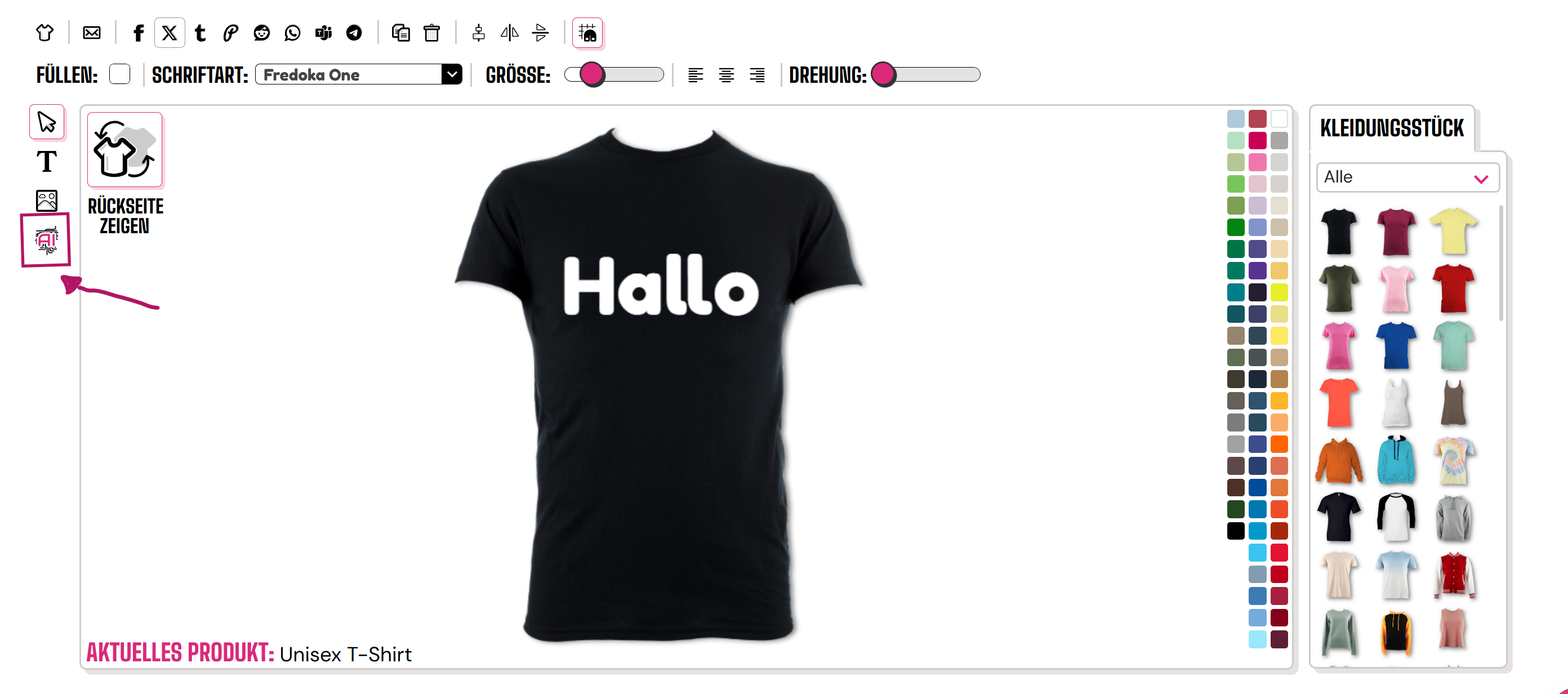 Um unser AI-Tool am Desktop zu nutzen, klicken Sie auf die Schaltfläche "AI" auf der linken Seite unten des Designers.