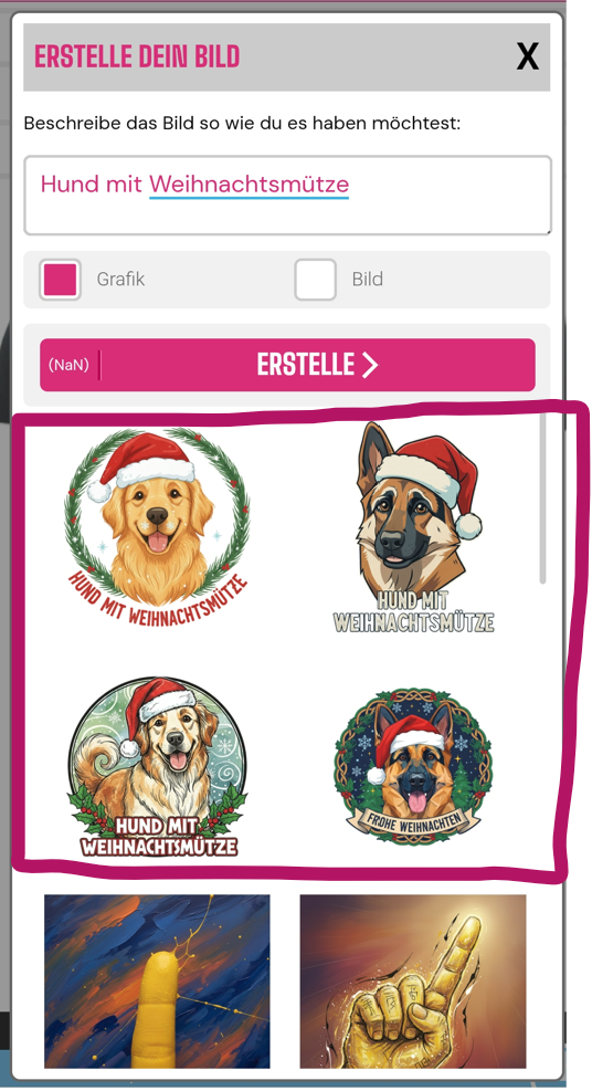 Wenn Sie dann eines der Bilder auswählen, wird es für Sie in den Designer geladen und Sie erhalten ein komplett individuelles Bild, das nur für Sie erstellt wurde.