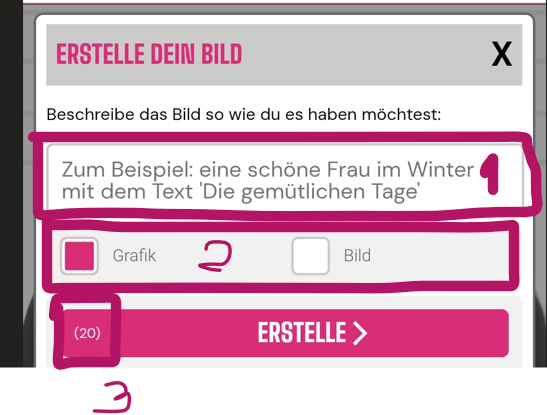 - Hier sehen Sie, wie viele Versuche Sie mit der KI haben. Dies wird alle 24 Stunden zurückgesetzt.