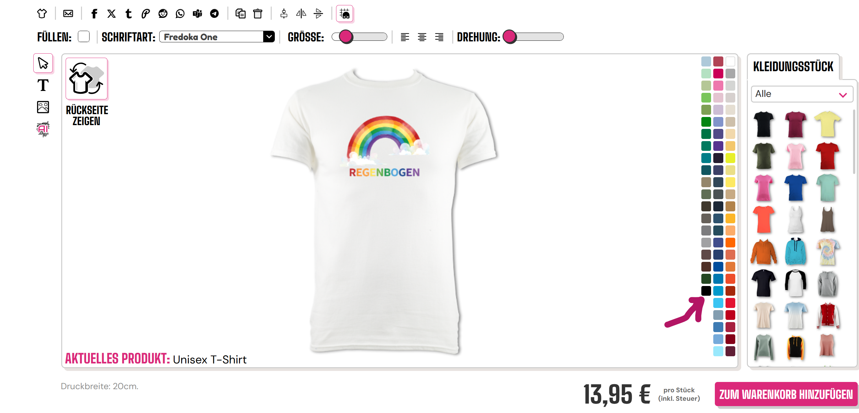 Klicken Sie auf die gewünschte Farbe und das T-Shirt wird dann für Sie in die gewünschte Farbe geändert.