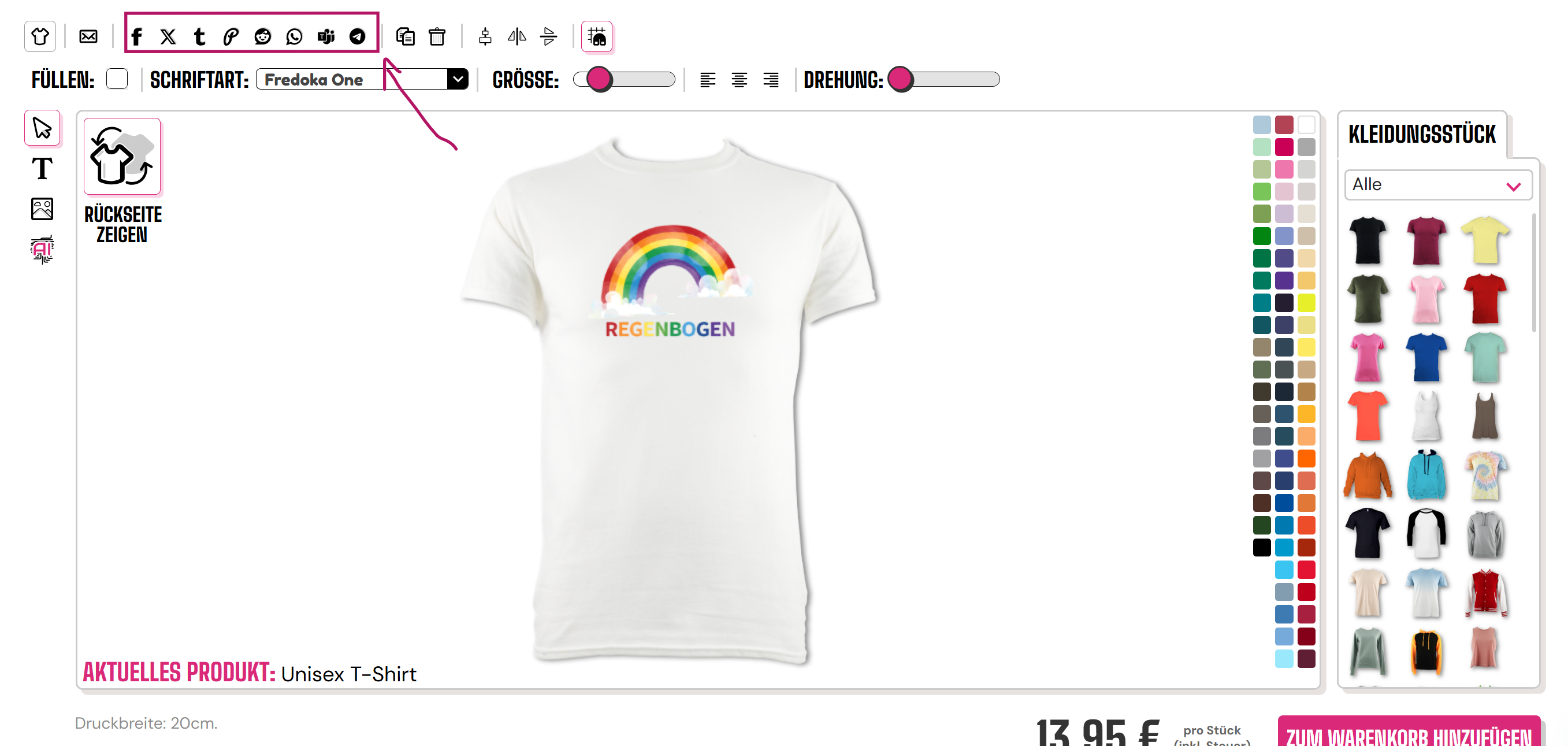 Um Ihre Designs am Desktop in sozialen Medien hochzuladen, müssen Sie auf die Plattform klicken, auf der Sie teilen möchten.