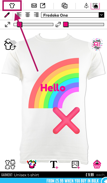 Για να ξεκινήσετε το σχέδιό σας από την αρχή, αν δεν είστε ευχαριστημένοι, θα πρέπει απλώς να πατήσετε το μικρό εικονίδιο με το μπλουζάκι στην πάνω αριστερή γωνία του σχεδιαστή.