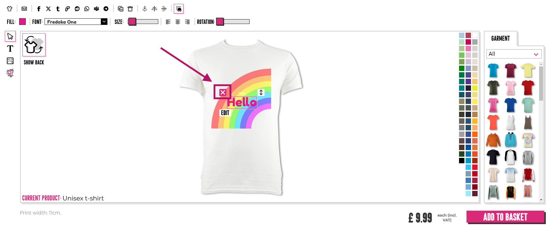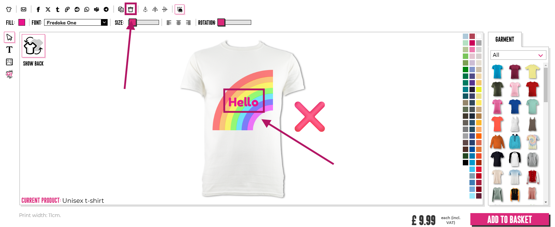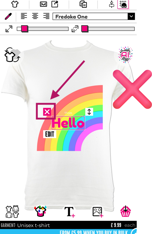Για να διαγράψετε μια ανεπιθύμητη εικόνα ή κείμενο, μπορείτε να κάνετε κλικ στον κάδο απορριμμάτων στην πάνω πλευρά του σχεδιαστή.