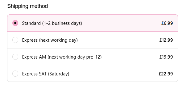 When you are in your basket screen you will be able to select your delivery method