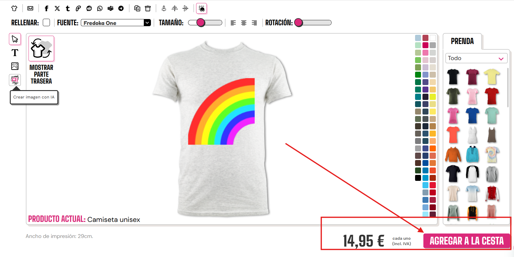 Cuando estés satisfecho con tu diseño, podrás hacer clic en Agregar a la cesta: