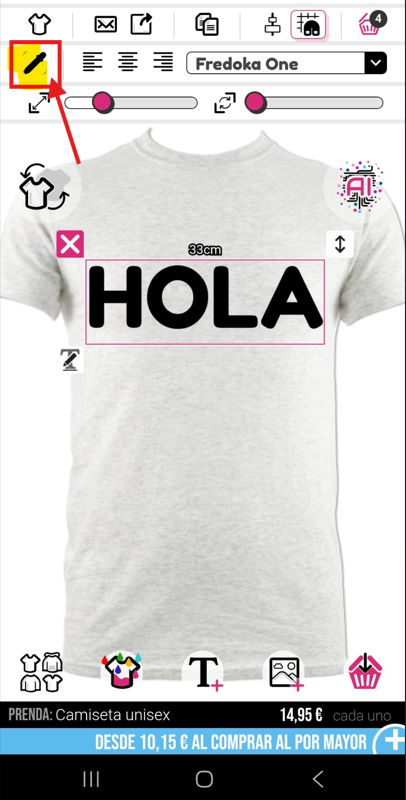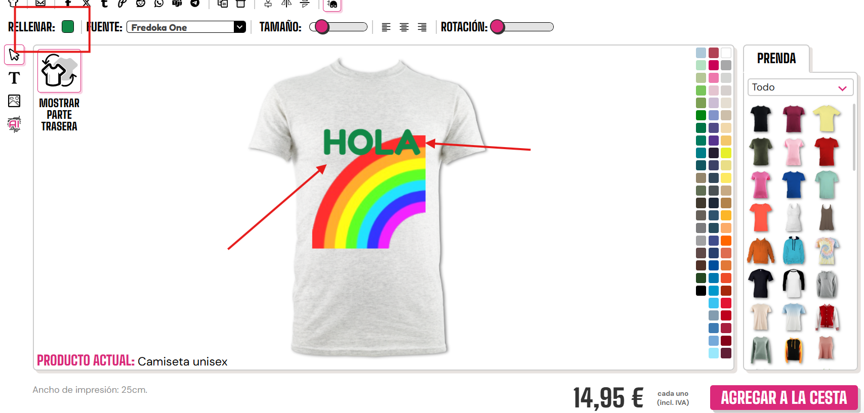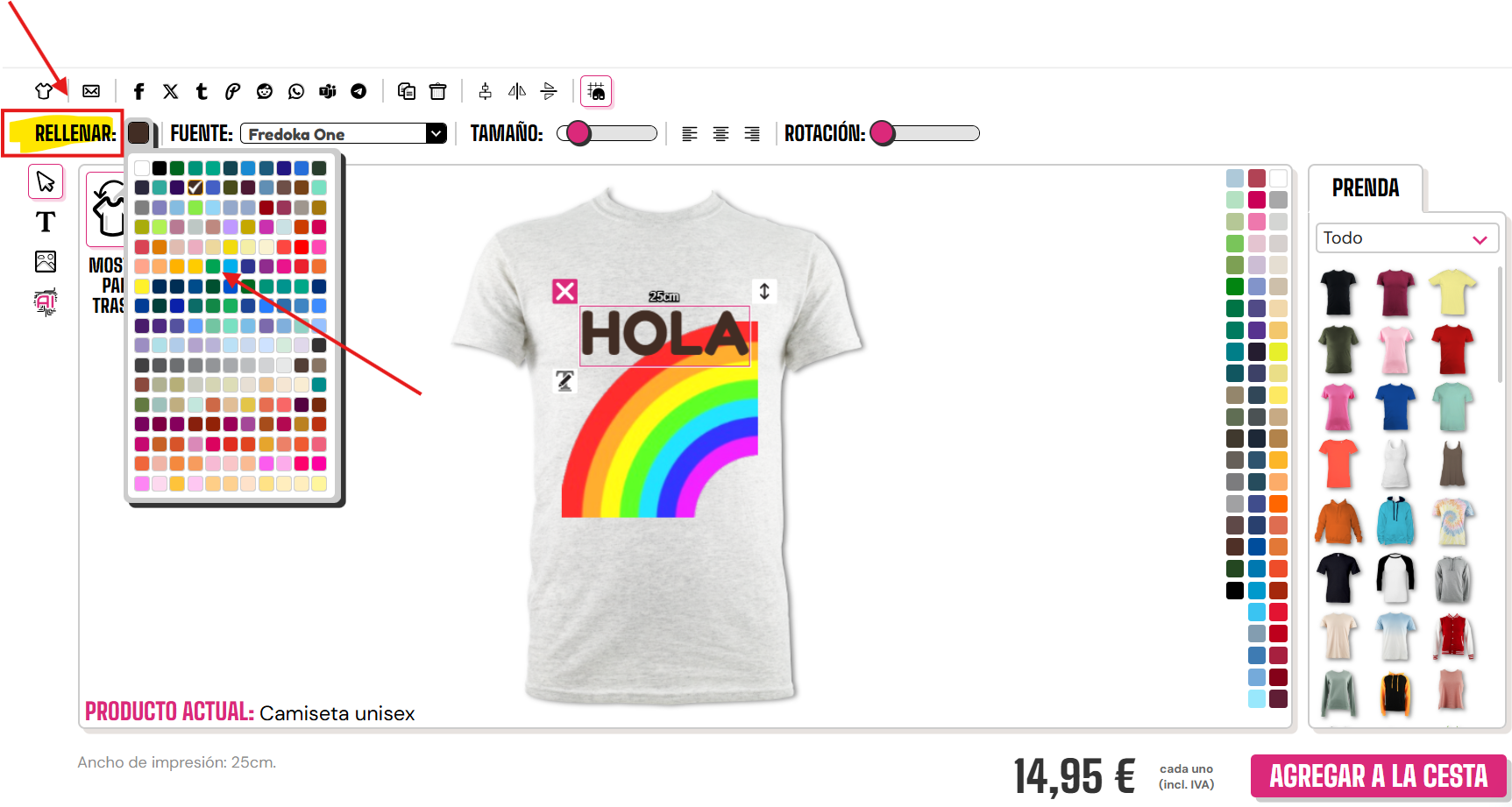 Si no deseas el color de texto seleccionado, necesitarás hacer clic para resaltar tu texto de modo que aparezca un cuadro alrededor. Luego, deberás hacer clic en "Rellenar" en la esquina superior izquierda del diseñador.