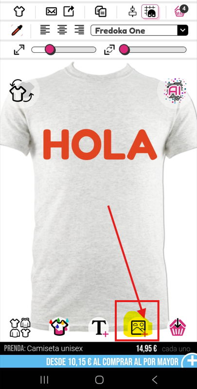 Esto se cargará en el diseñador para ti (habrá una barra de carga mientras se descarga). Una vez que se haya descargado, tu imagen se mostrará en la camiseta.