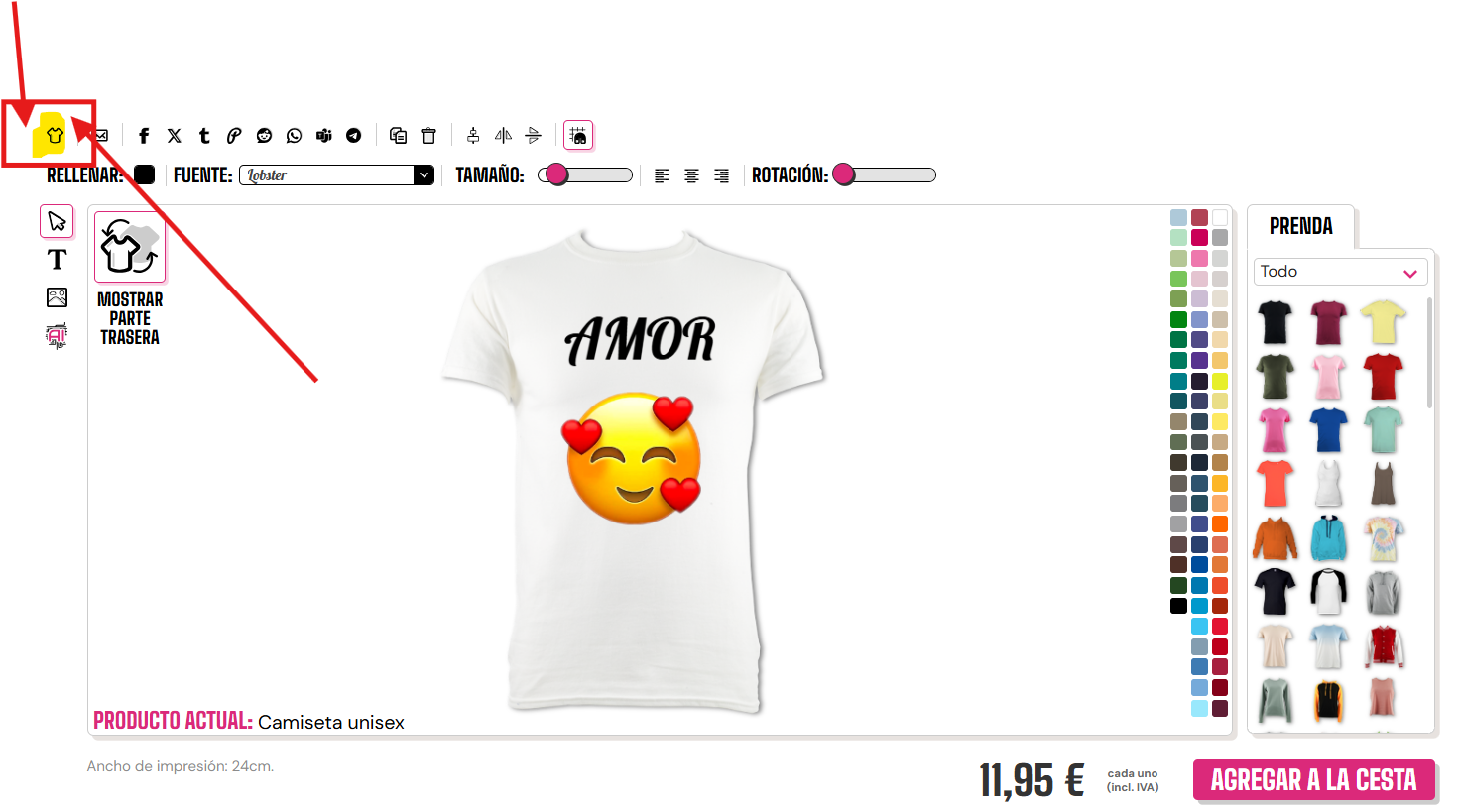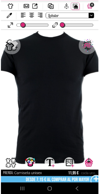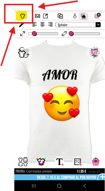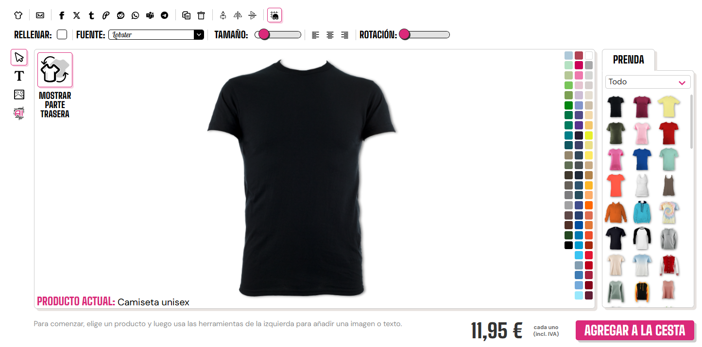 Para reiniciar tu diseño si no estás satisfecho. Solo necesitas hacer clic en el pequeño icono de camiseta en la esquina superior izquierda.