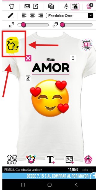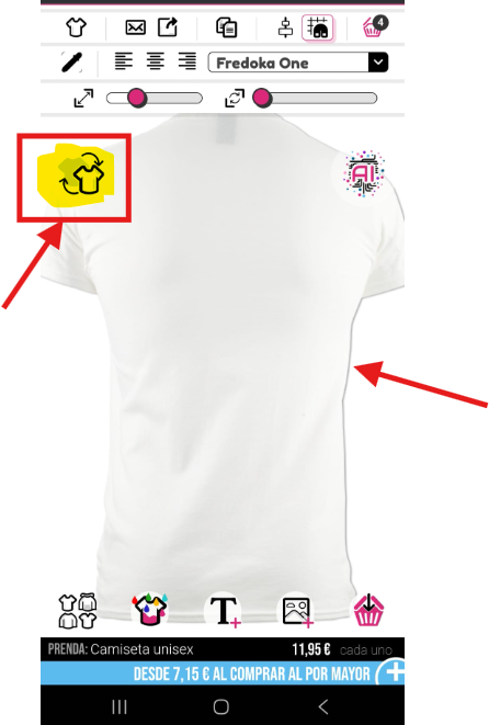 Para girar tu camiseta, necesitarás hacer clic en el icono de girar camiseta en la parte superior izquierda del diseñador