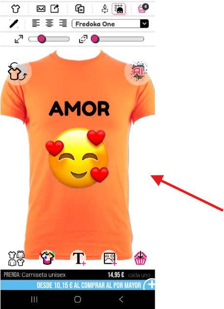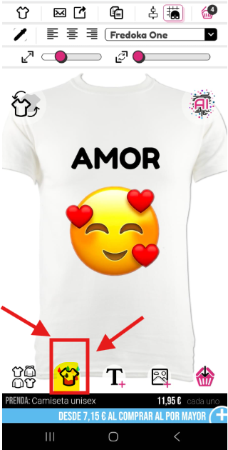 Para cambiar el color de tu prenda, necesitarás seleccionar el selector de color de camiseta en la parte inferior del diseñador.