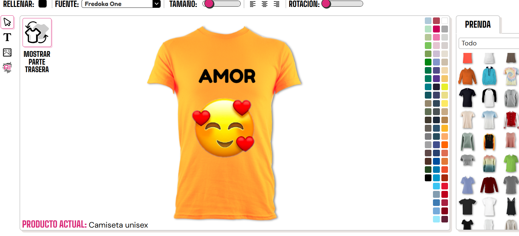 Haz clic en el color que deseas y esto cambiará el color de la camiseta para ti.
