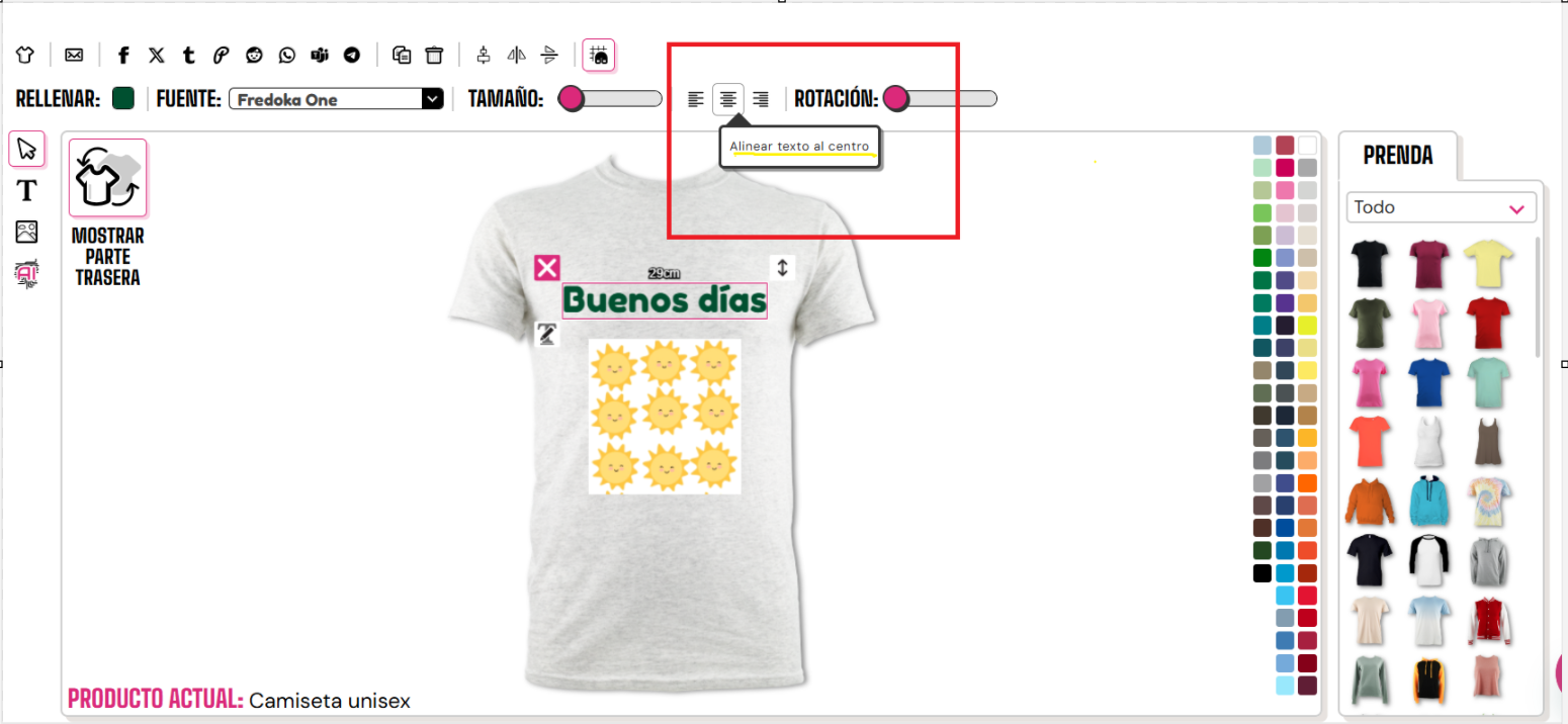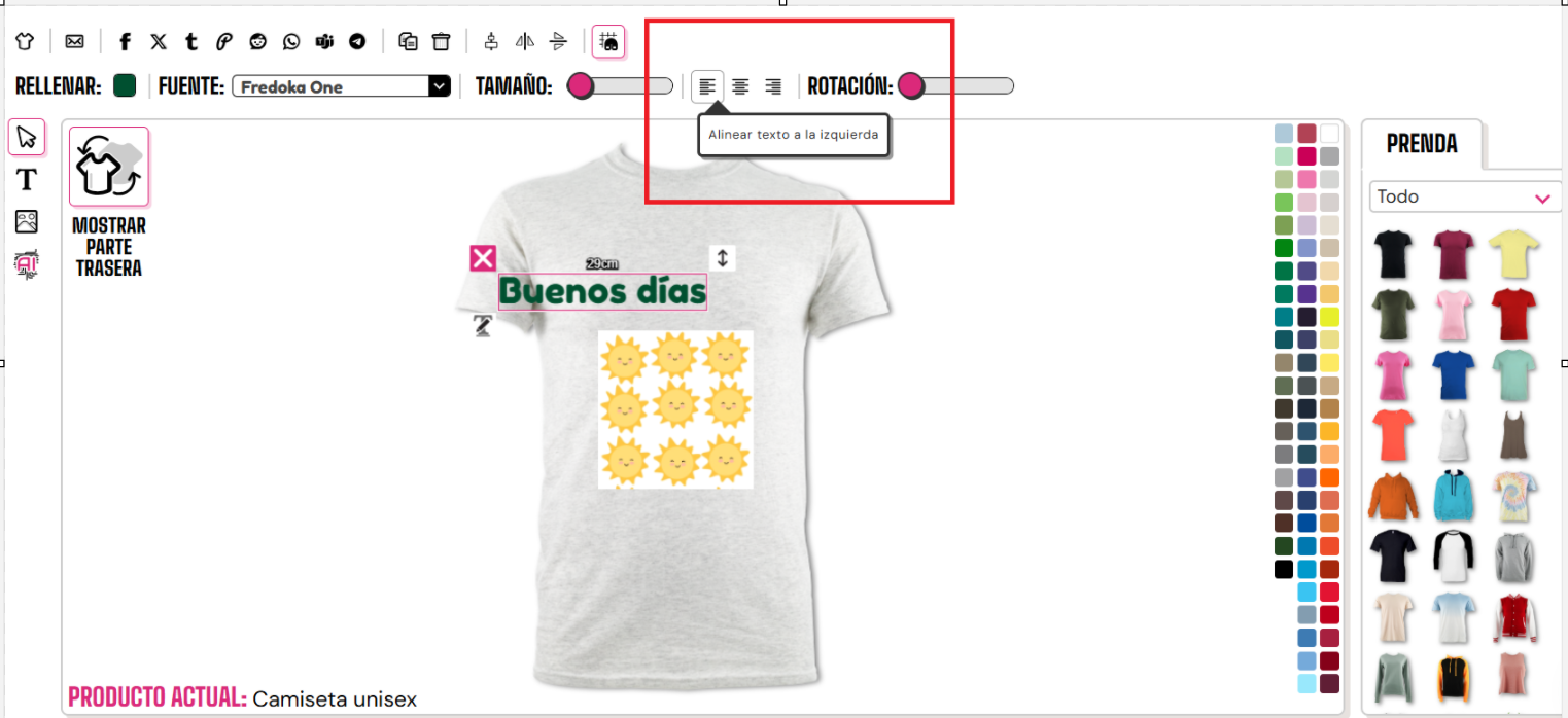 Para alinear tu texto a la izquierda/centro/derecha, necesitarás hacer clic en el botón correspondiente.