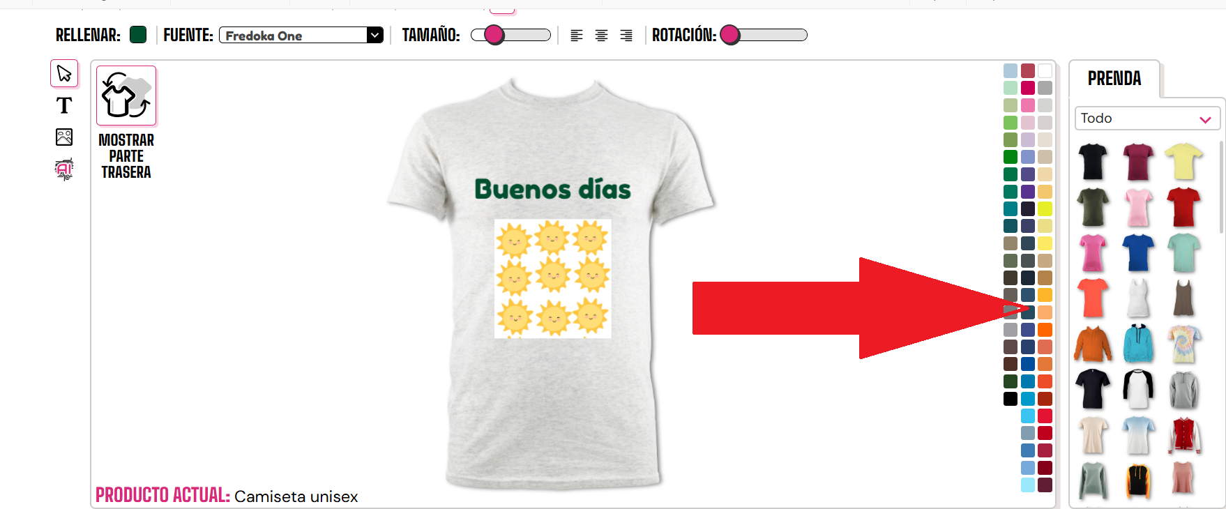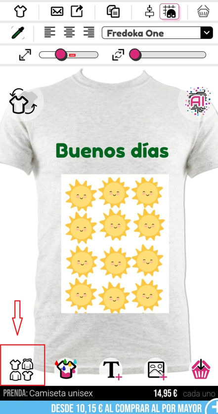 Para elegir tu prenda, puedes seleccionar la que prefieras haciendo clic en el icono de la prenda en la parte inferior del diseñador