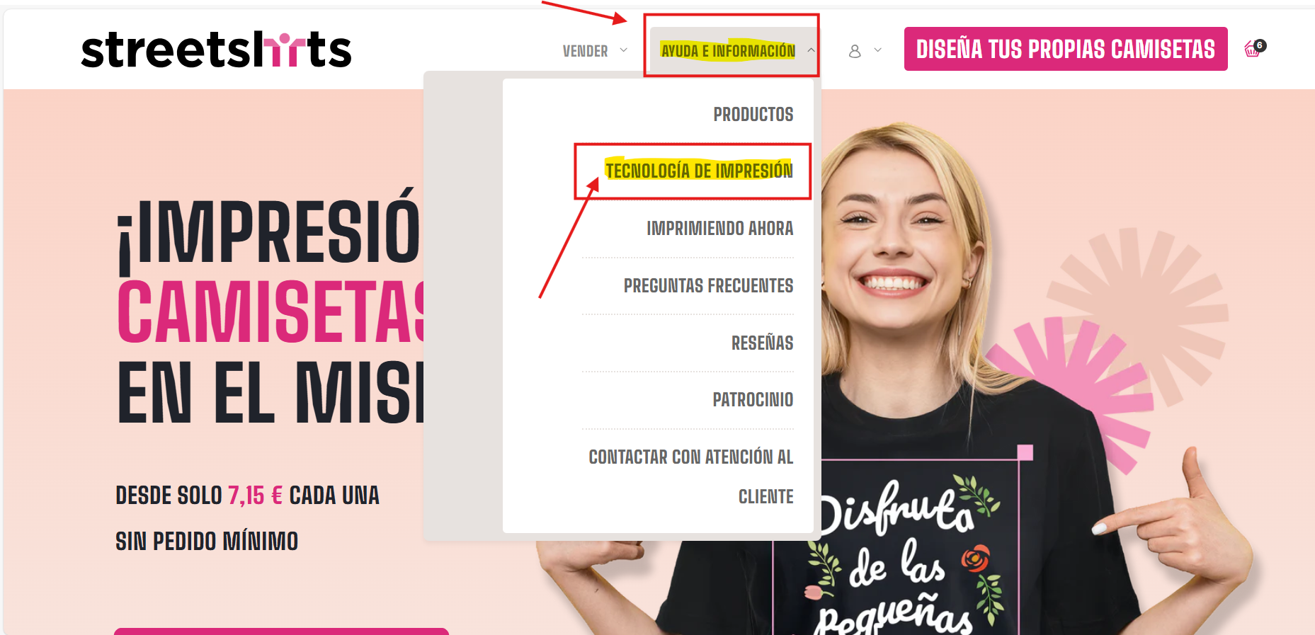 Para obtener más información sobre nuestra tecnología de impresión, ve a Ayuda e Información en la parte superior de la pantalla y haz clic en "TECNOLOGÍA DE IMPRESIÓN"