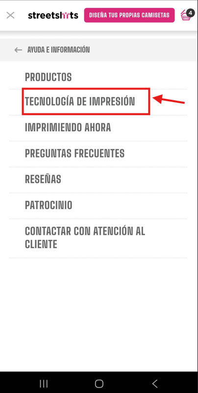 Ahora haz clic en "TECNOLOGÍA DE IMPRESIÓN"