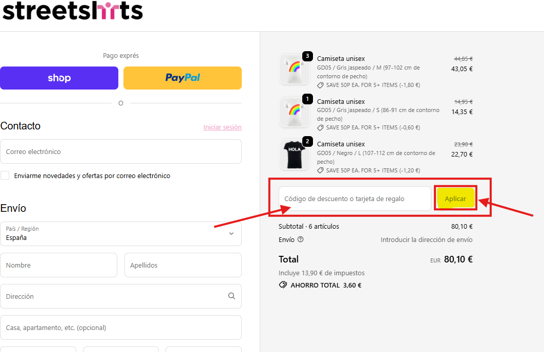 Una vez que hayas introducido el código del cupón, haz clic en "Aplicar".