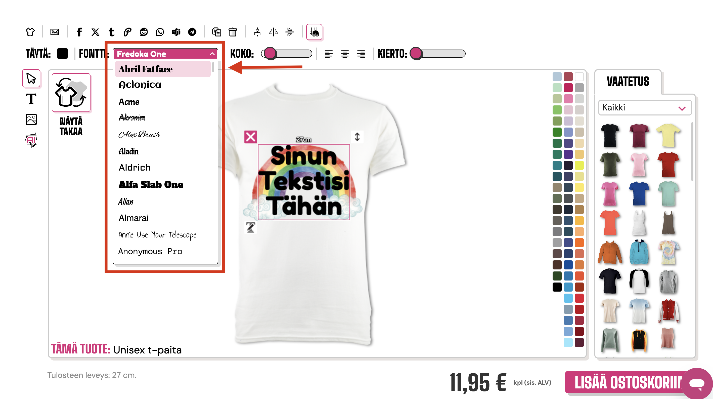 Tämä avaa alasvetovalikon kaikista saatavilla olevista fonteista. Voit käyttää vierityspalkkia nähdäksesi kaikki fontit.