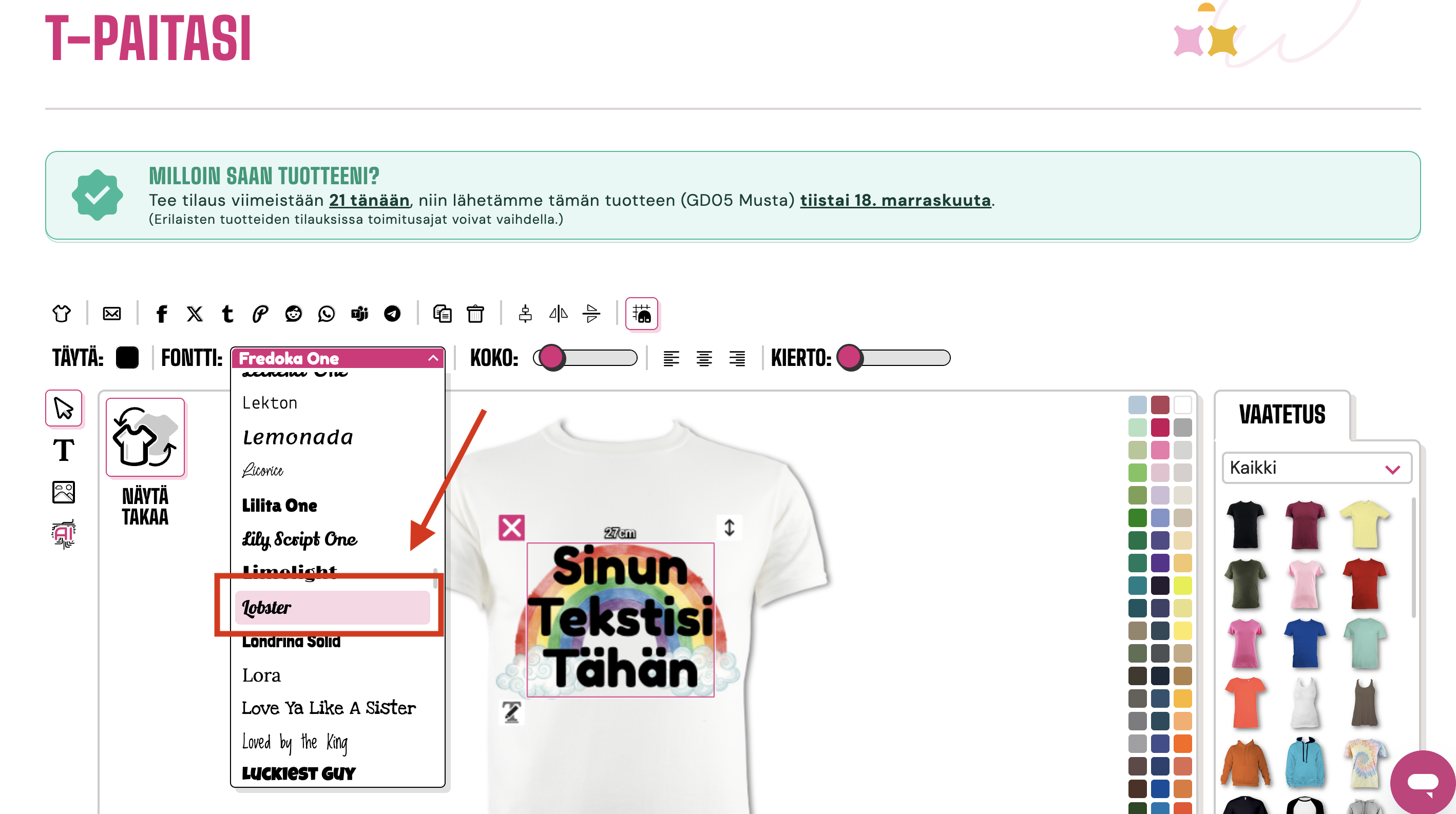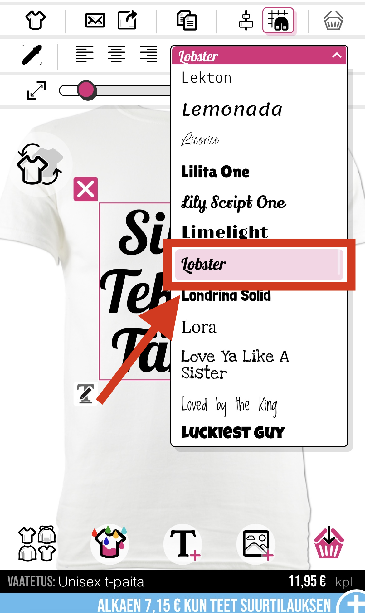 Haluamme fontin "Lobster", joten klikkaa tätä valitaksesi fontin
