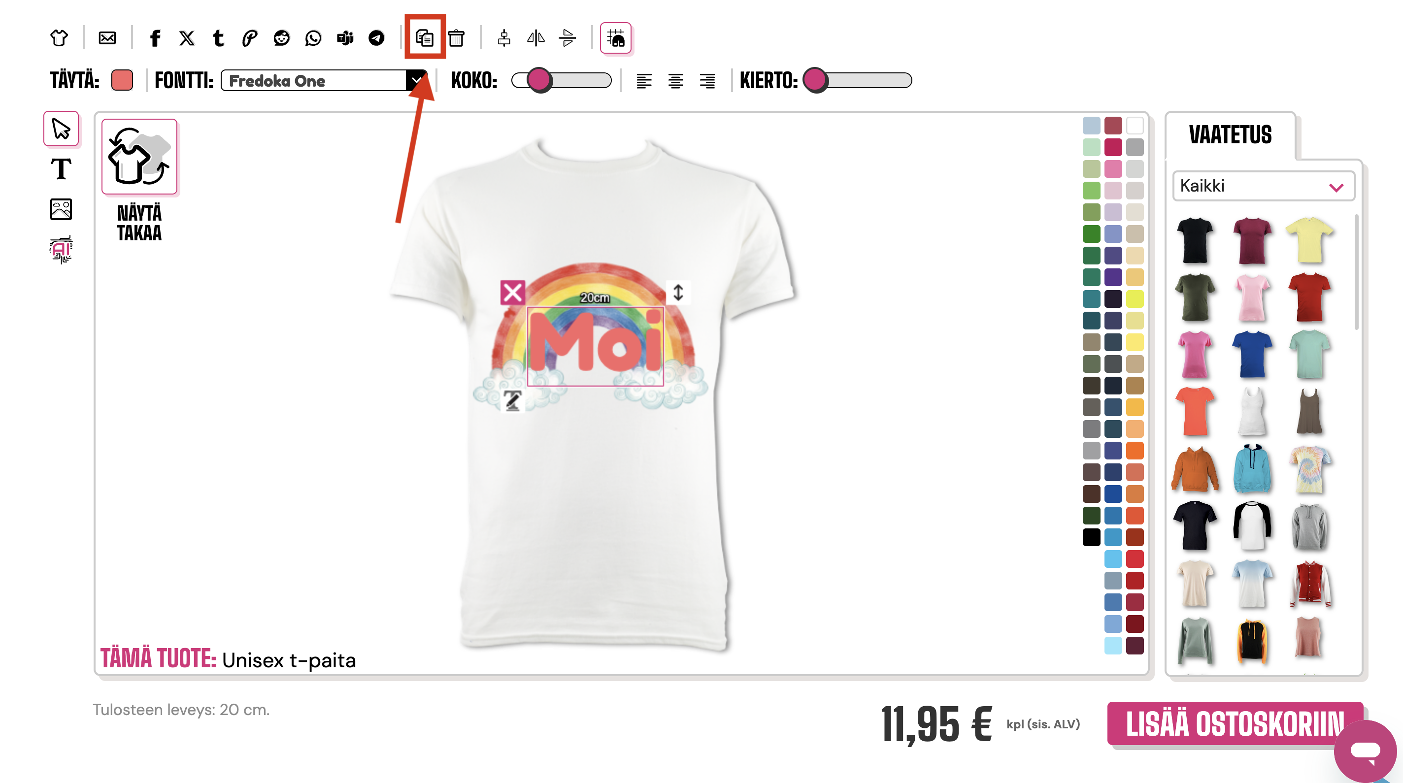 Jos haluat kopioida kuvan tai tekstin varmistaaksesi, että ne kaikki vastaavat toisiaan, voit napsauttaa suunnittelutyökalussa olevaa kopiointipainiketta. Varmista, että olet valinnut kuvasi tai tekstisi ennen tämän painikkeen painamista.