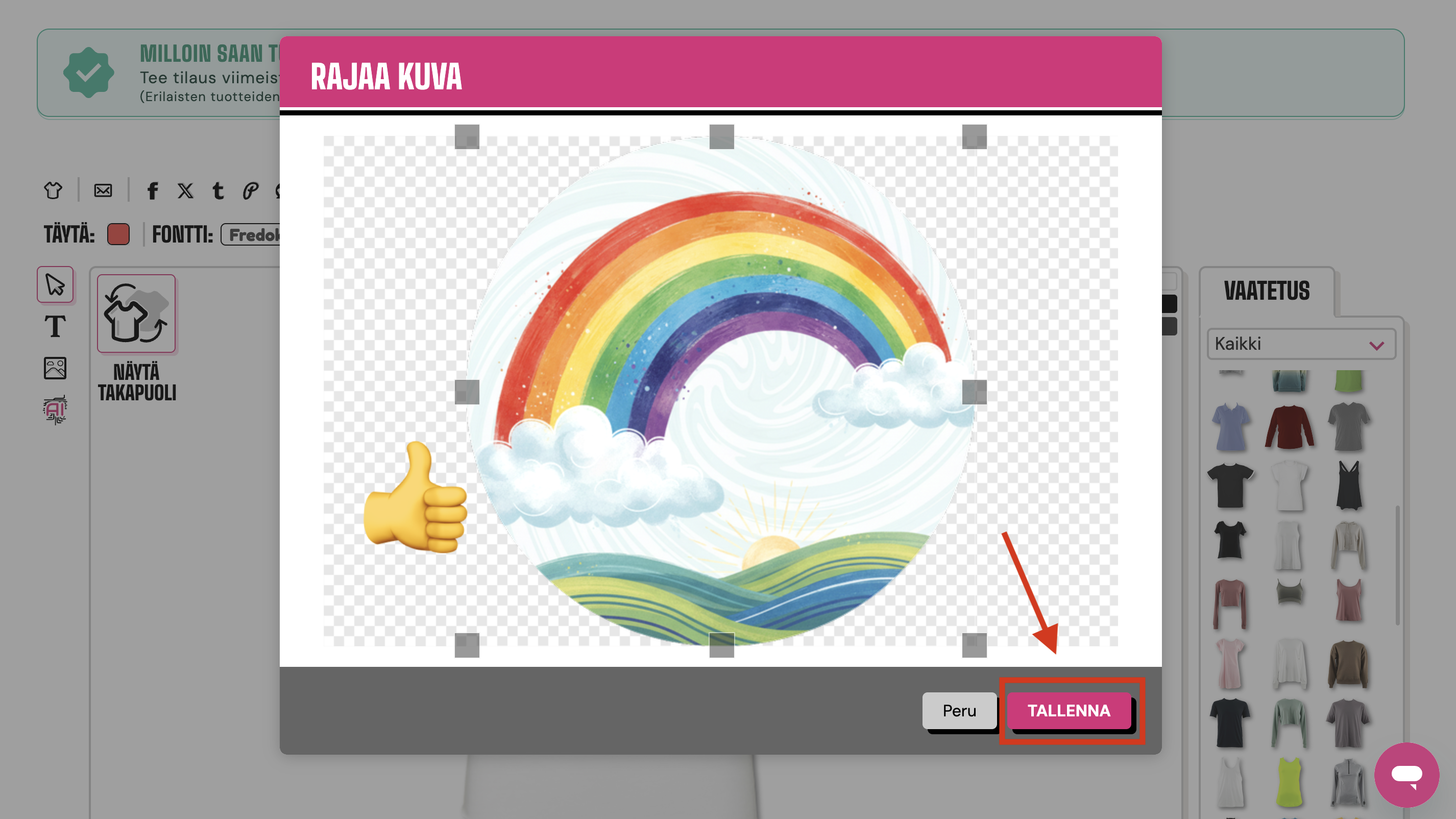 Jos huomaat, ettet voi edetä pidemmälle muokatessasi suunnitelmaa. Esimerkiksi rajatessasi kuvaa ja näyttösi näyttää tältä: