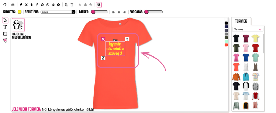 Most már rákattinthatsz a színpanelre, és a szövegednek most már a kívánt színűnek kell lennie