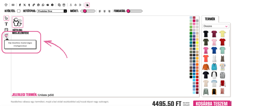 Az AI eszköz használatának megkezdéséhez kattints a tervező bal oldalán található AI gombra.
