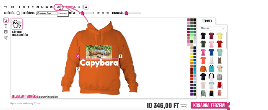 Ha egy képet vagy szöveget szeretnél duplikálni, hogy biztosan mindegyik egyezzen, kattints a tervezőben található másolás gombra. Győződj meg róla, hogy kiválasztottad a képet vagy a szöveget, mielőtt megnyomod ezt a gombot.
