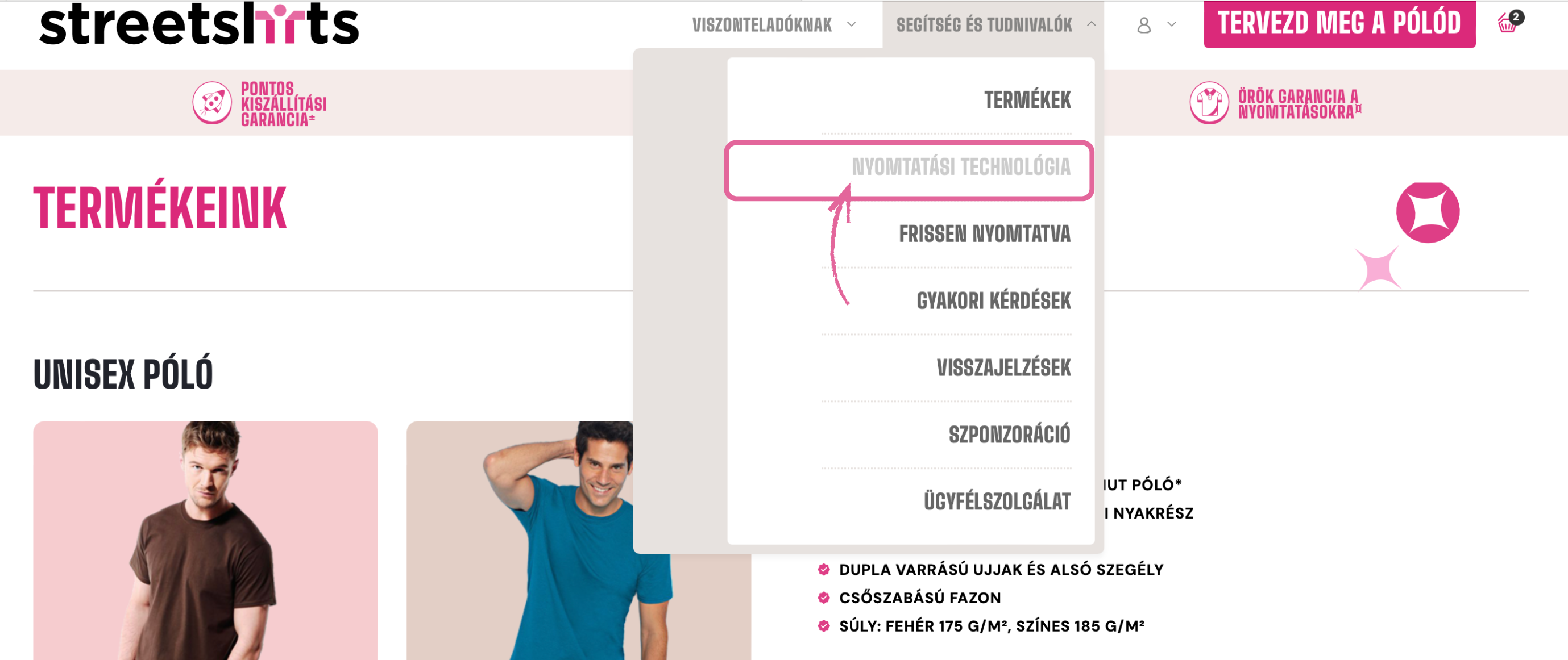 Ha többet szeretnél megtudni a nyomtatási technológiánkról, menj a képernyő tetején található segítség és tudnivalók részhez, és kattints a "NYOMTATÁSI TECHNOLÓGIA" gombra: