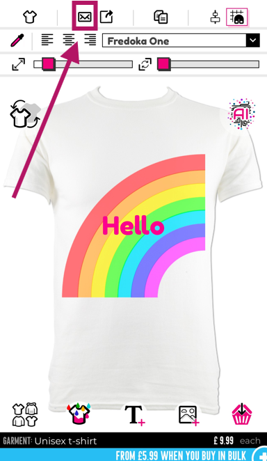 Wann s du de Moment nach net wëlls kafen, mee däin Design späichere wëlls, kanns du am Designer déi entspriechend Späicherfunktioun (Enveloppe-Symbol) benotzen.
