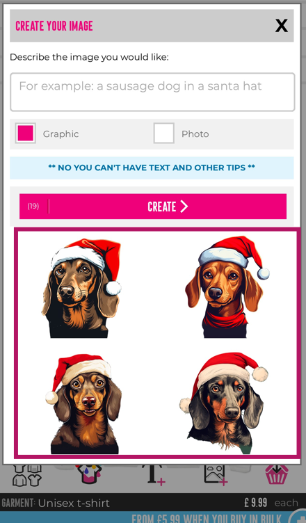 Wann Dir dann ee vun de Biller auswielt, gëtt dëst fir Iech an den Designer gelueden an Dir hutt e komplett personaliséiert Bild, dat just fir Iech gemaach gouf.